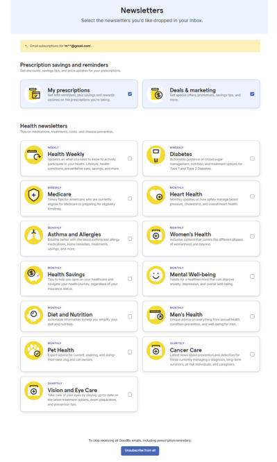 You might not want any of them and prefer to just stick to your actual prescriptions and keep things simple. The key thing here is that they give you a choice. Someone might even discover a topic they didn’t realize there is a newsletter for and be excited to sign up for it.