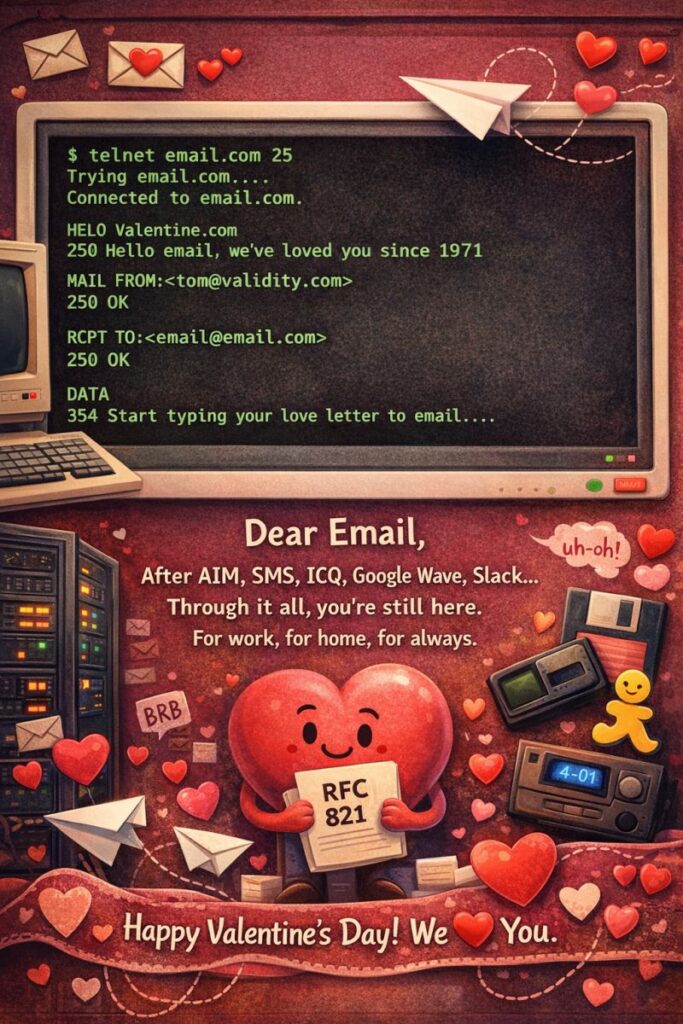 Of course, it wouldn’t be Valentine’s Day without my favorite annual LinkedIn tradition: Love Letters to Email! Here’s one example from Validity’s Tom Bartel that made our hearts flutter from this year: